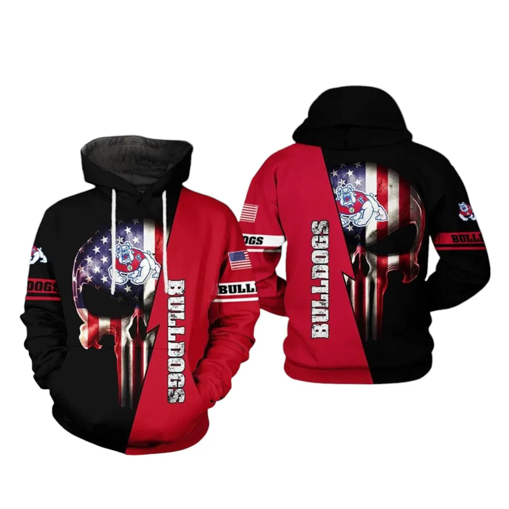 Fresno State Bulldogs Ncaa Us Flag Skull 3D All Over Print Hoodie